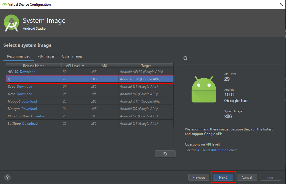 Açılan Virtual Device Configuration penceresinden herhangi bir Cihazı seçerek Next butonuna tıklıyoruz.