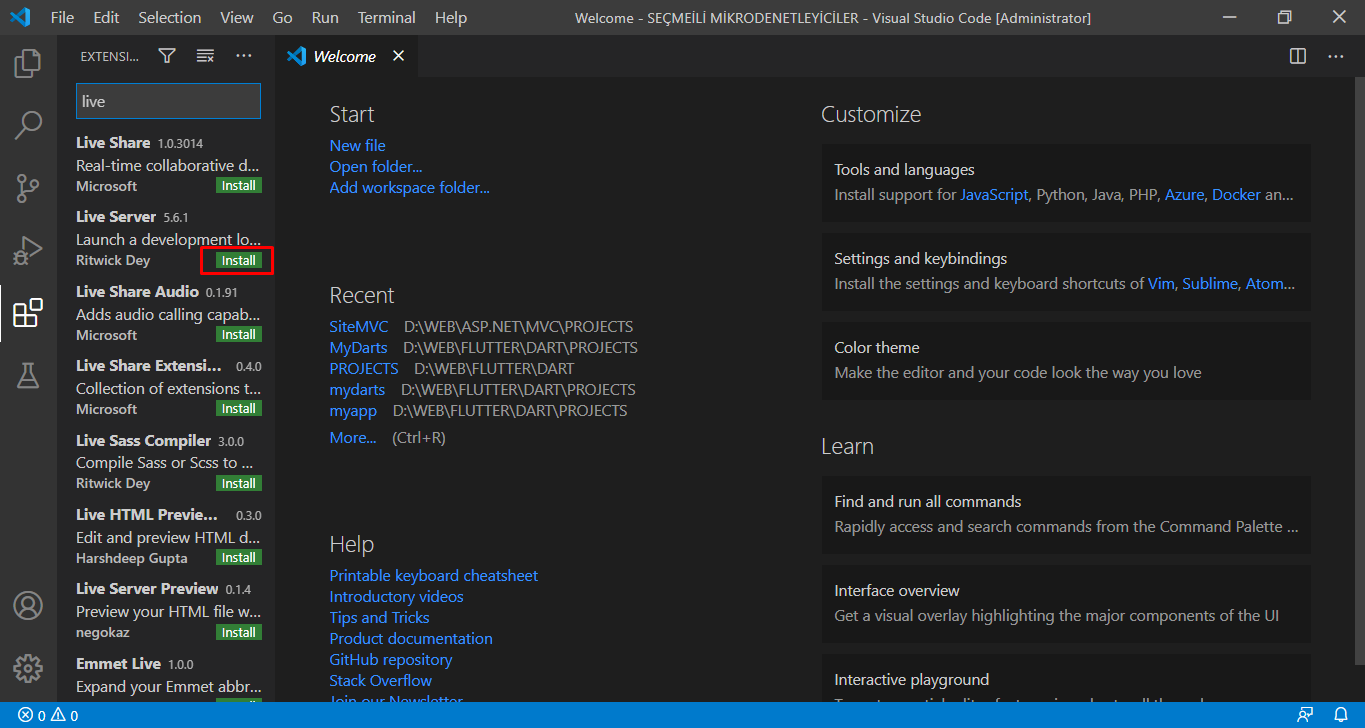 VS Code’da Gerekli Extensions’ları Kurma