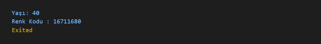 int yas=40, renkKodu=0xFF0000;