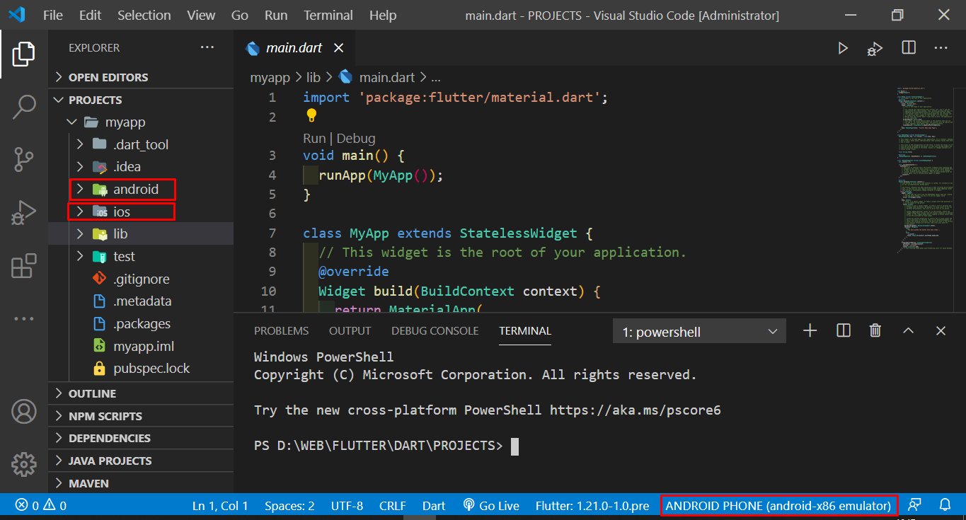 flutter create myapp