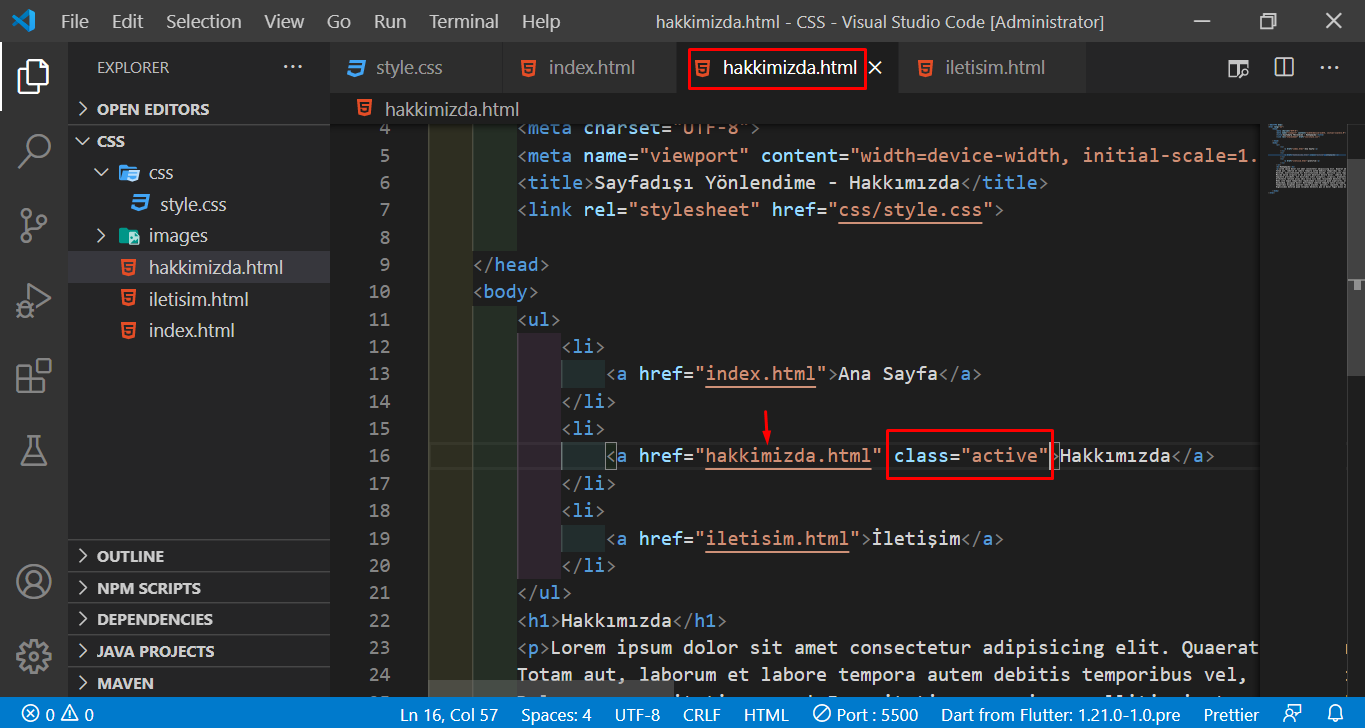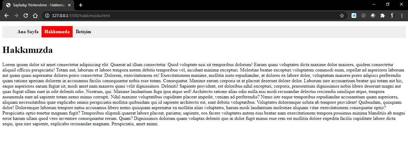 Hakkımızda sayfasında isek hakkimzda.html’de <a href=”hakkimizda.html”> etiketine,