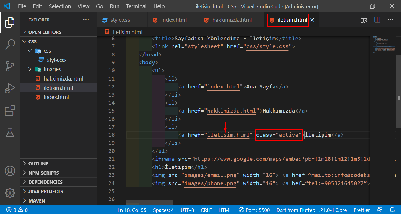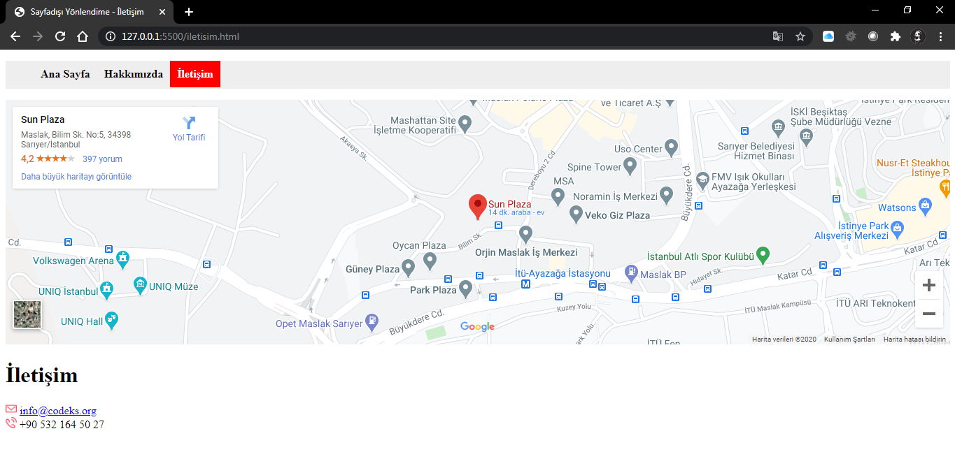 İletişim sayfasında isek iletisim.html’de <a href=”iletisim.html”> etiketine