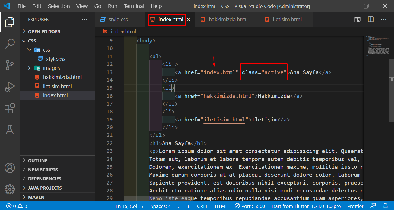 Ana Sayfa’da isek index.html ‘de <a href=”index.html”> etiketine,