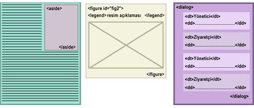 Web sitelerini kodlarken belli yapısal kısımlara ayırırız. Üst kısım, içerik kısmı, sol-sağ kolonlar, menü alanı, alt kısım ve içerik alanı. HTML5 geliştiricileri de bunları düşünmüşler ve bu alanların her biri için bir etiket tanımlamışlar.