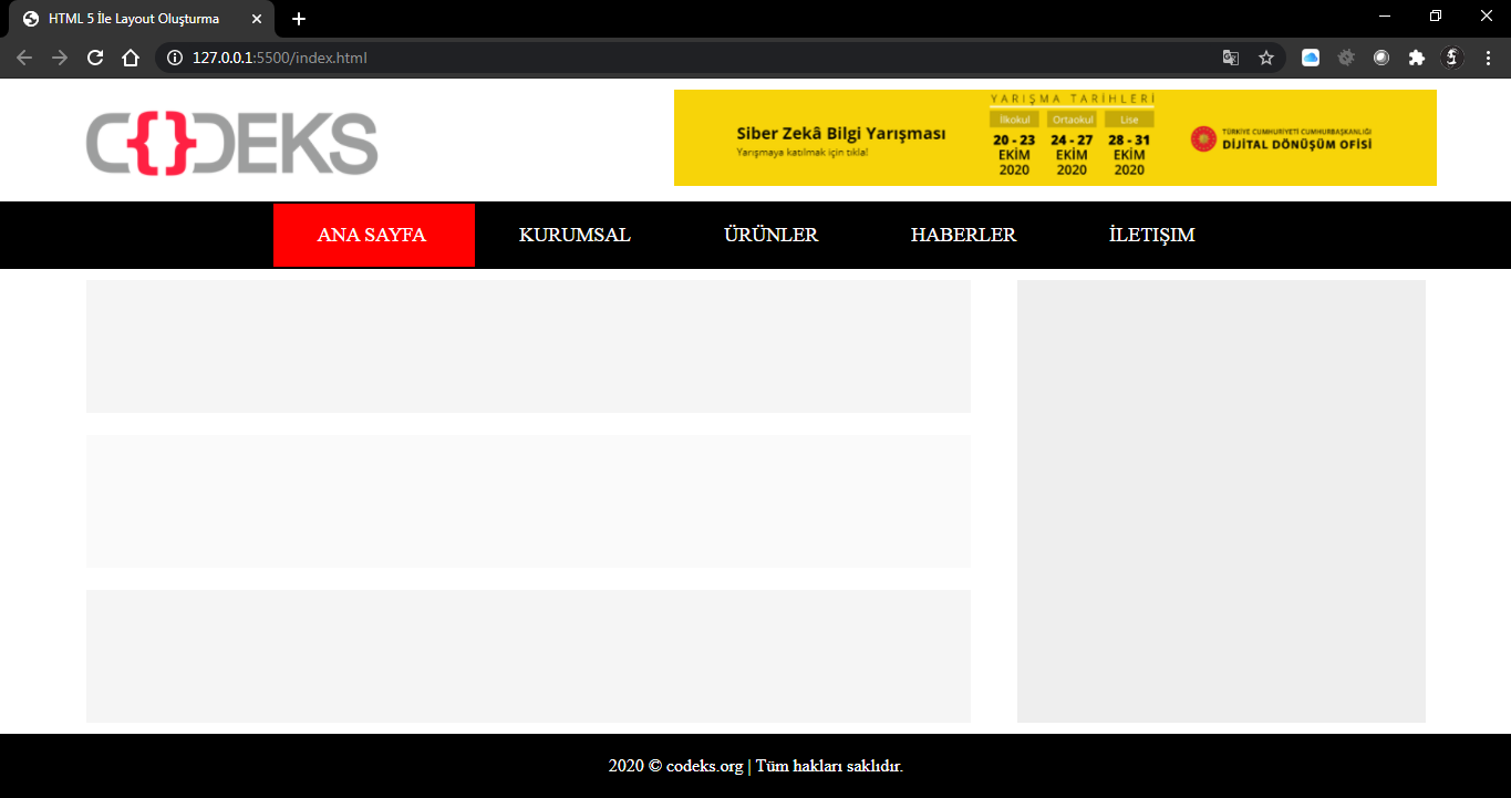 Biz bir önceki dersimizde layout oluştururken bu alanlar için <div> etiketini kullandık, yeni etiketlerle bu tekil <div> etiketi yerine her kısım için bir element kullanma imkânımız olacak. Bu web sayfalarını kodlarken bize birçok avantaj sağlayacaktır. CSS kodlaması açısından da Bu elementlere biraz göz atalım.